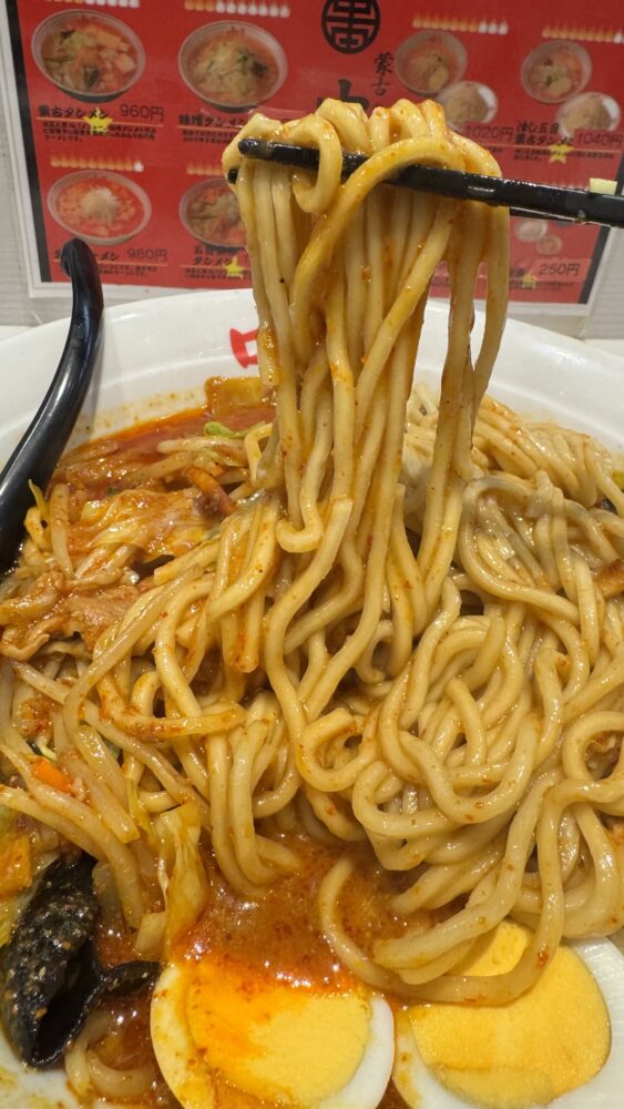 ▲麺はコシがあり、北極スープが絡んで辛旨。終盤は北極スープを吸ってデロ気味になるのも良き。