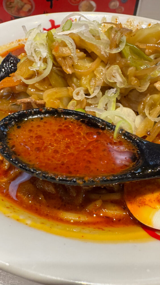 ▲スープは、王道の北極で辛旨。野菜の甘みがほんのり感じられ、通常の北極よりはややマイルドかも。