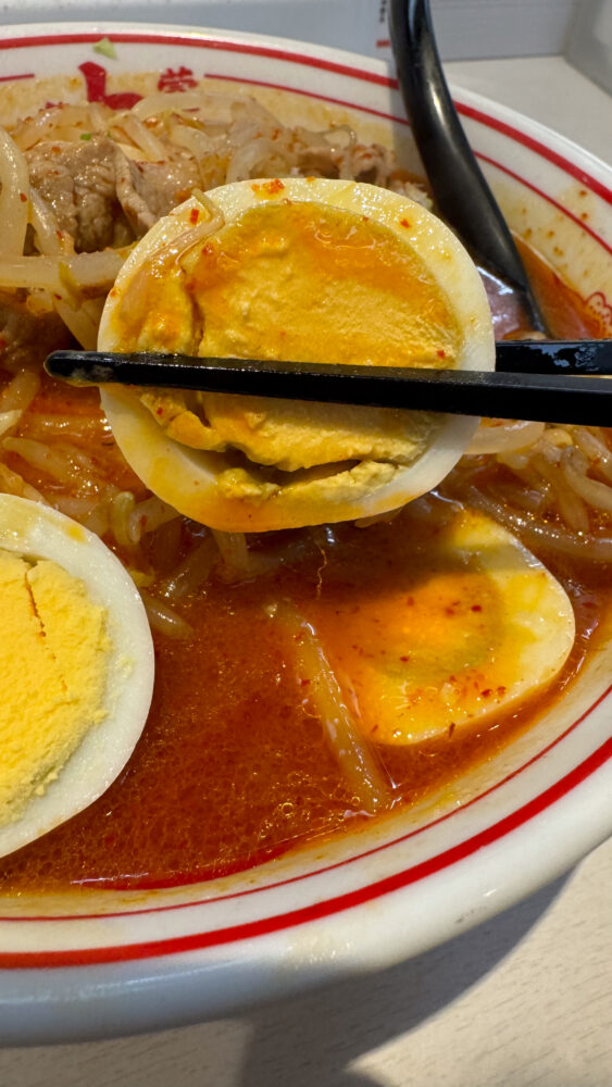 味噌卵麺は、美味しい辛味噌のラーメンにオアシス的な玉子が添えられ、ちょうど良いバランスの辛旨でした!