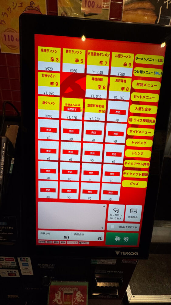 ▲食券機で注文します。リニューアルされて交通系ICやクレジット決済も対応になって嬉しい。