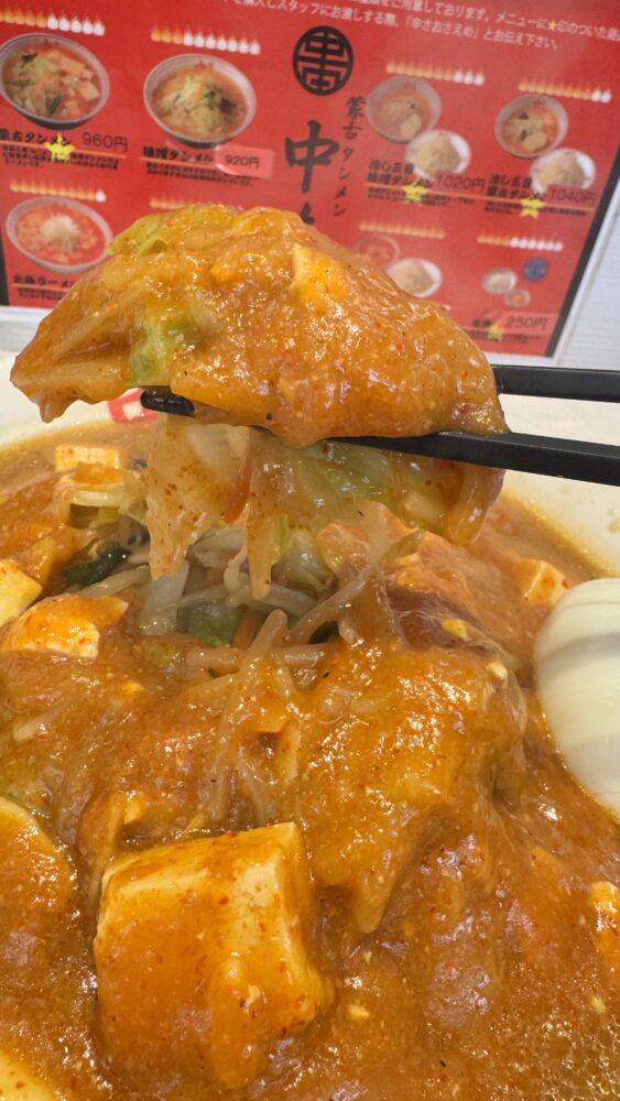 中本の蒙古タンメンは、クタクタの野菜に、辛旨で粘度の高い麻婆豆腐、ピリ辛な味噌のスープにコシのある麺が安定の辛旨さでした!