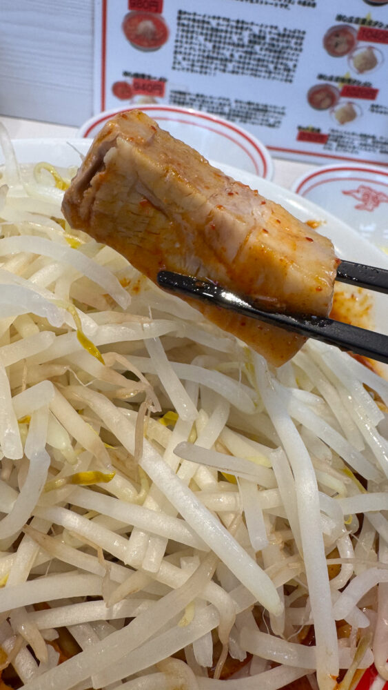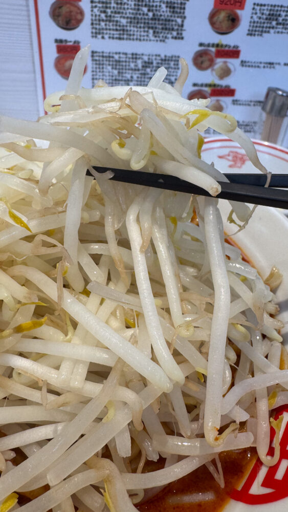 ▲野菜は、シャキとした食感。味付けがないプレーンなもやし。いつもよりベジファーストを控えめにします。