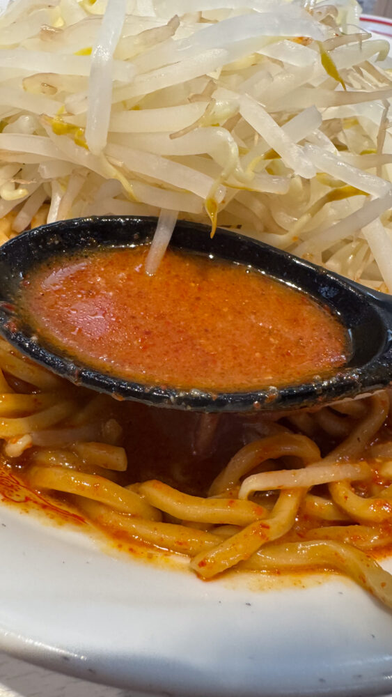 ▲スープは、北極に豚骨を合わせたもの。辛さ10ですが、豚骨の旨味でマイルドに感じて美味しい。