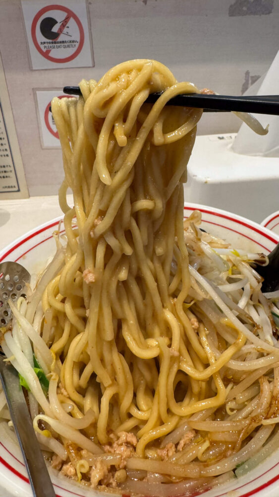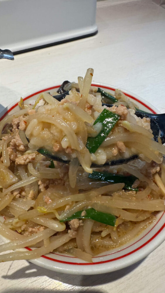 ▲二郎系ではないですが、もやしはけっこうな量ですね。シャキめな食感。