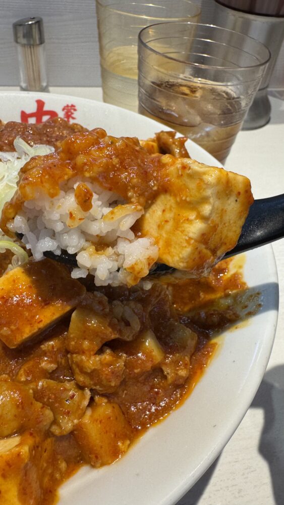 ▲辛めの麻婆豆腐が辛旨。ひき肉やたけのこも入っていてライスが進みます。