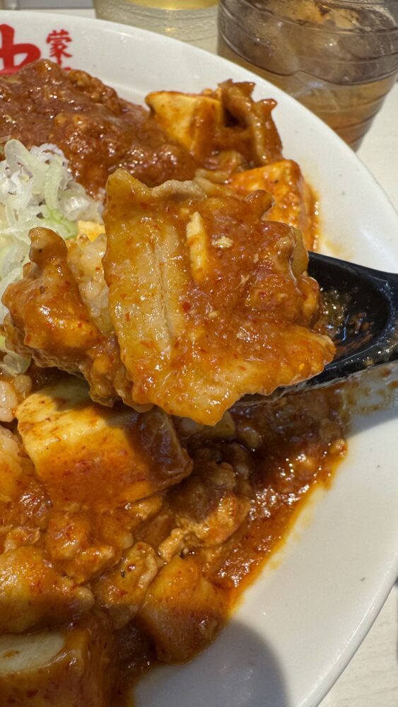 ▲特製樺太丼はバラ肉も入っています。辛い麻婆餡が豚肉に合って旨い。