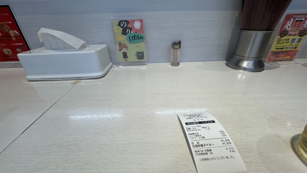 このタイミングで蒙古タンメン中本のアプリを見せ、ポイントをためてもらう+使いたいクーポンを申告すると良いです。