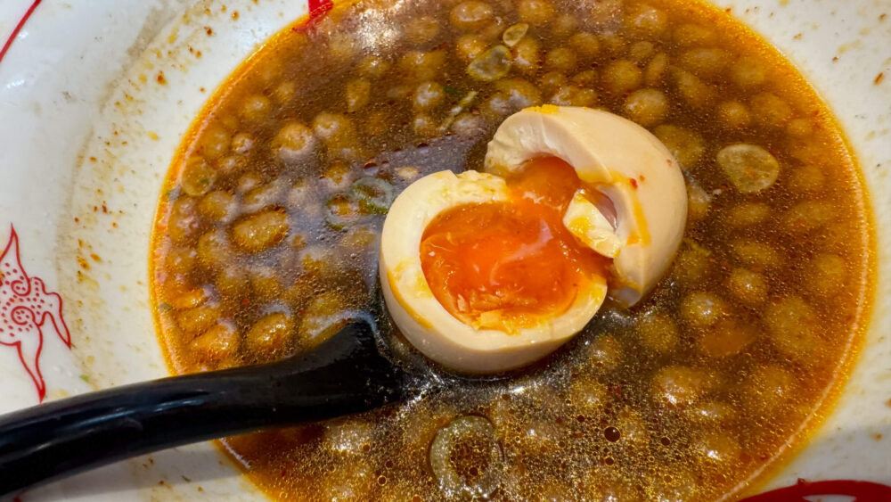 ▲麺を食べ終えたら、デザート代わりに味玉。しっかり半熟で美味しいですね。