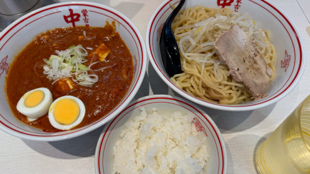 麺量が少なめだと、つけ汁の麻婆豆腐が余ってしまってもったいないので、胃のキャパが問題なければ半ライスでも良いので頼んだ方が楽しめると思います。