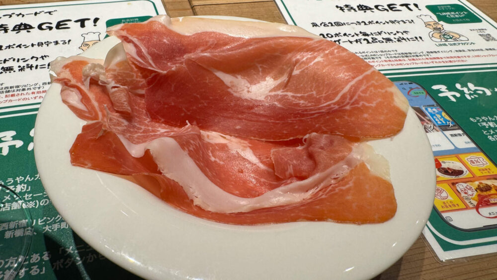 ▲ハモンセラーノは1枚あたりが大きく、塩味もしっかりあって美味。