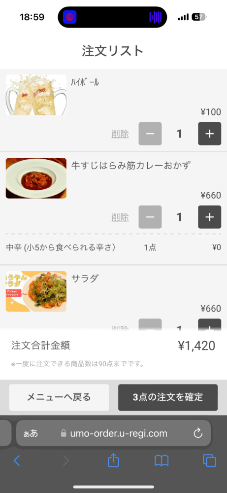 今回は牛すじはらみ筋カレーおかず+もうやんサラダ+ハモンセラーノ+ハイボール+レモンサワー+グラスワイン赤を注文しました!