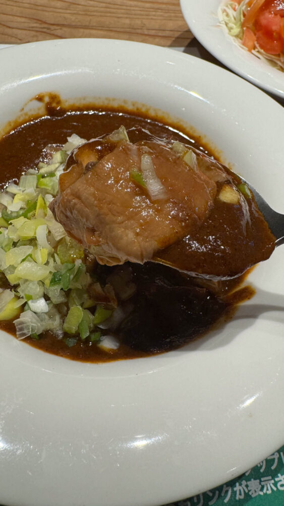 ▲牛すじはらみ筋カレーおかず。ライスのないカレーがおかずなのは面白いですね。