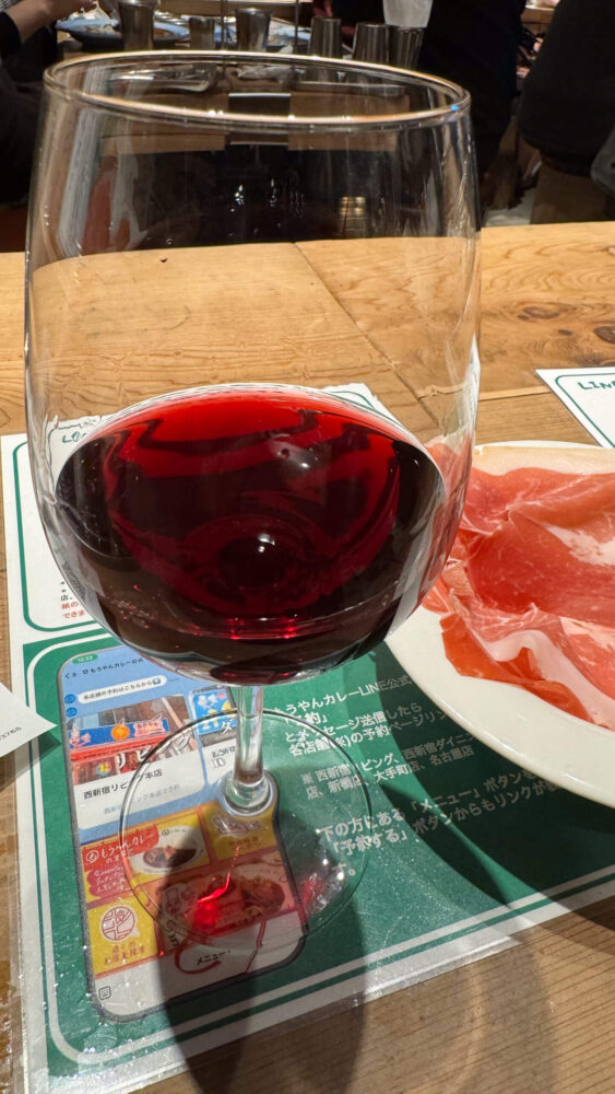 ▲グラスワイン赤で〆。ハモンセラーノを咀嚼しながら赤ワインを口に含むと天国です・・・!