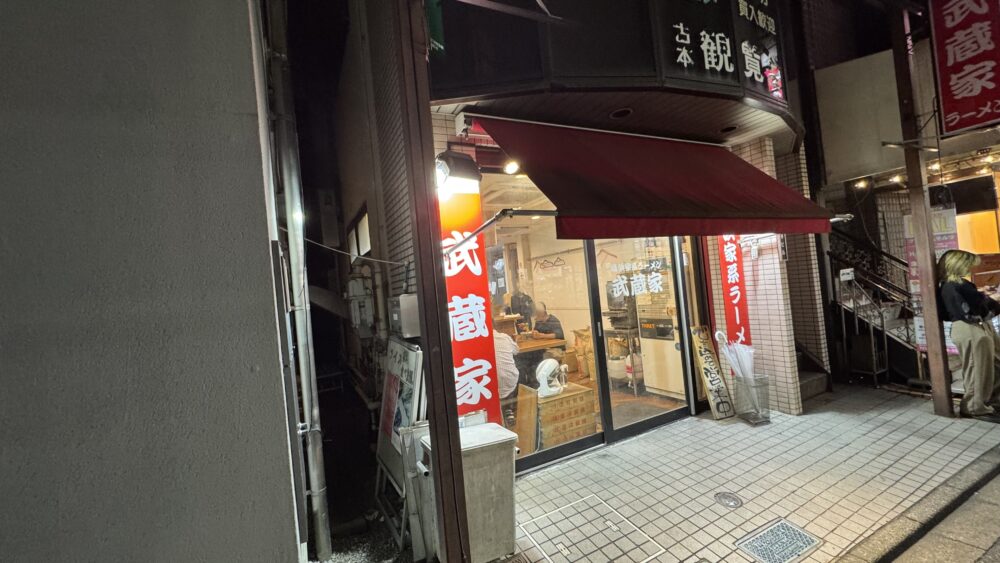 たかさご家の系譜の「新中野系(あるいは中野系)」で近所にある美味しい家系ラーメンのお店が「横浜家系ラーメン 武蔵家 秋津店」。