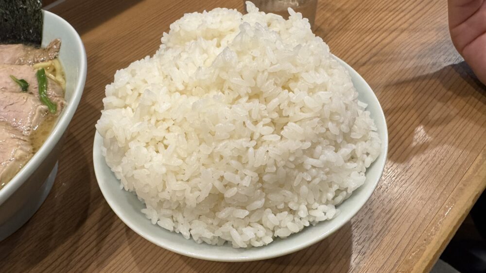 チャーシューを楽しみたい時は、麺大盛にするとライスのキャパがなくなるので、並盛が無難かもしれませんね。