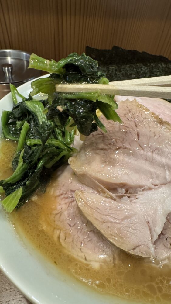 ▲ほうれん草は、しょっぱ旨なスープが染みてライスのおかず力がアップ。ライスが進みます。