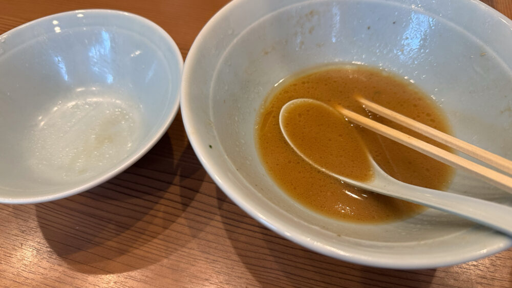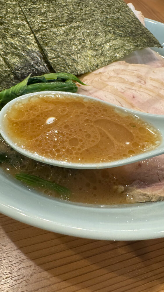 ▲スープは濃いめ・多めにしたので、めちゃ濃厚。米泥棒なテイスト。