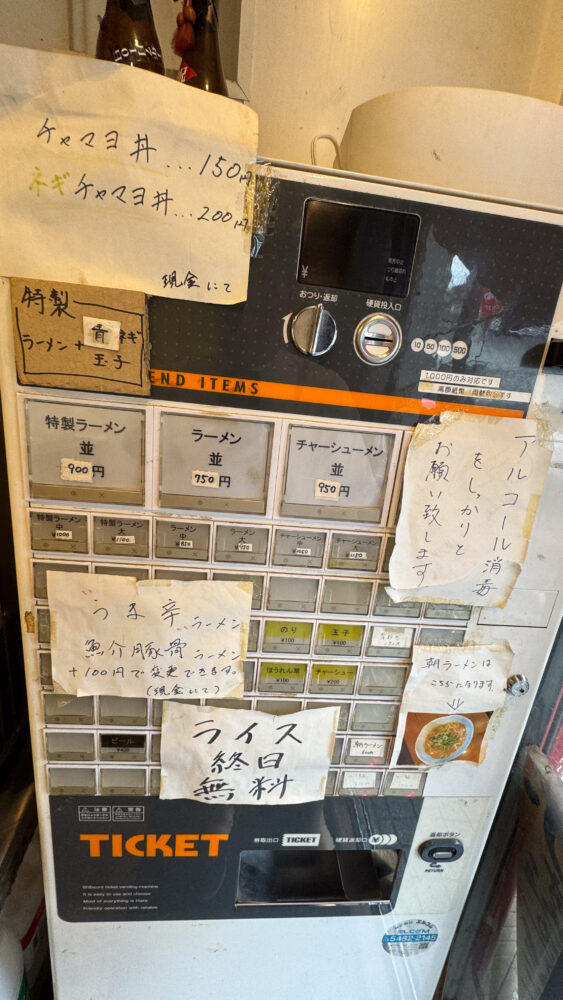 また、味の好み(麺の硬さ・味の濃さ・油の多さ)も聞かれますが、「硬め・濃いめ・多め」でお願いしました。