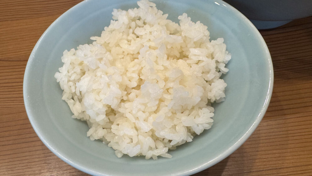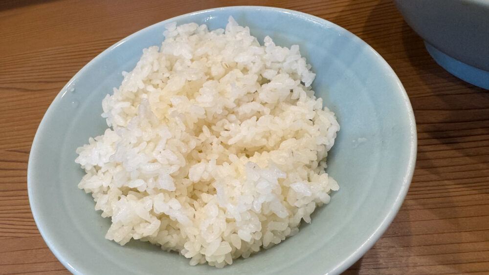 食券提出時に店員さんからライスを付けるか聞かれます(お替りも無料)。