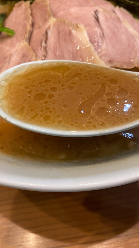 ▲スープは濃厚でライスのおかず確定。豚骨の臭みはなく、ちょっととろみを感じます。