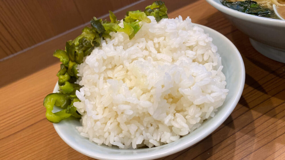 食券提出時に店員さんからライスを付けるか聞かれます(お替りも無料)。