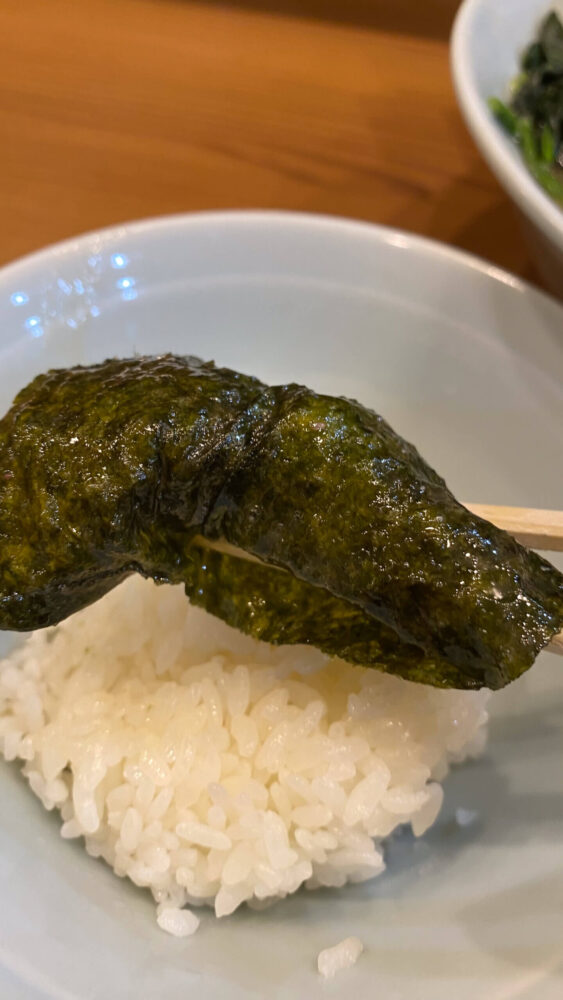 ▲海苔はスープに浸してからライスを巻き込んで食べます。これが最高。