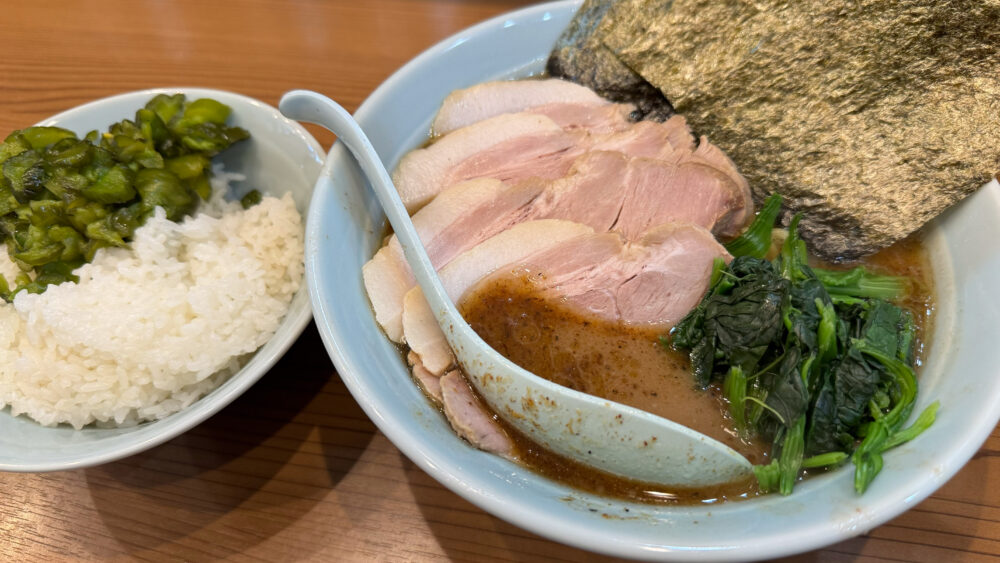 たかさご家の系譜の「新中野系(あるいは中野系)」で近所にある美味しい家系ラーメンのお店が「横浜家系ラーメン 武蔵家 秋津店」。 前回はチャーシューメン大+のり+ライスを楽しみました。 今回は別メニューを食べてみようと思い …