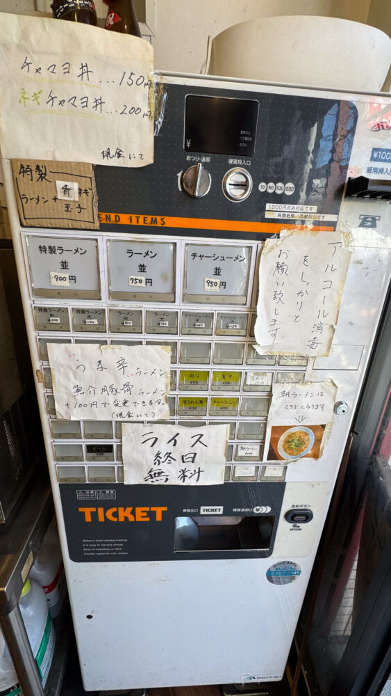 魚介豚骨ラーメン変更は食券提出時に100円を現金で店員さんへお渡し。