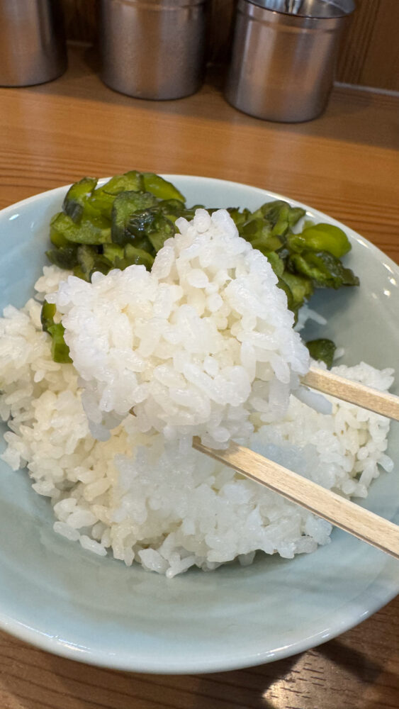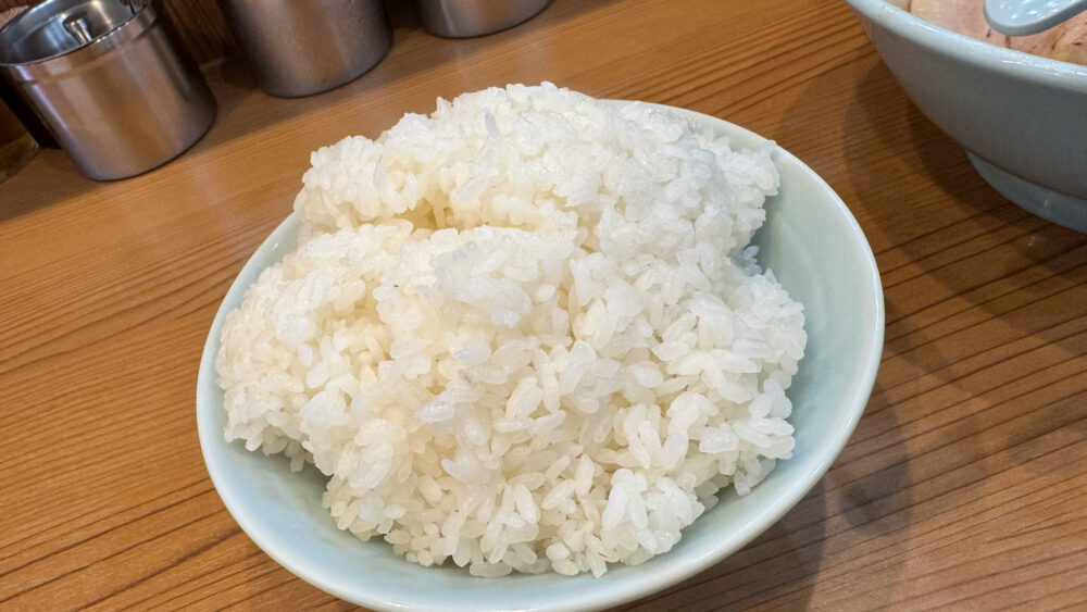 食券提出時に店員さんからライスを付けるか聞かれます(お替りも無料)。