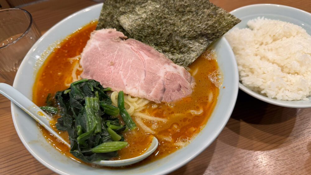 武蔵家のうま辛ラーメンは、ほどよいピリ辛加減で、よりライスが進む家系ラーメンでした!