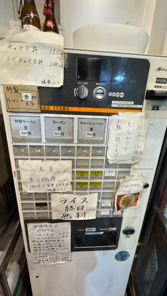 うま辛ラーメン変更は食券提出時に100円を現金で店員さんへお渡し。