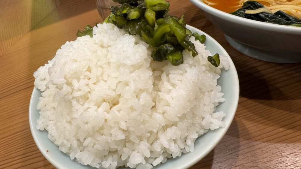 食券提出時に店員さんからライスを付けるか聞かれます(お替りも無料)。