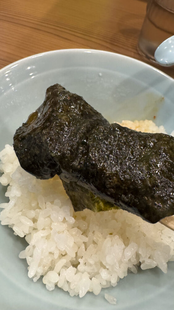 ▲海苔は、いつものようにスープにしっかり浸し、ライスを巻いて食べると最高。
