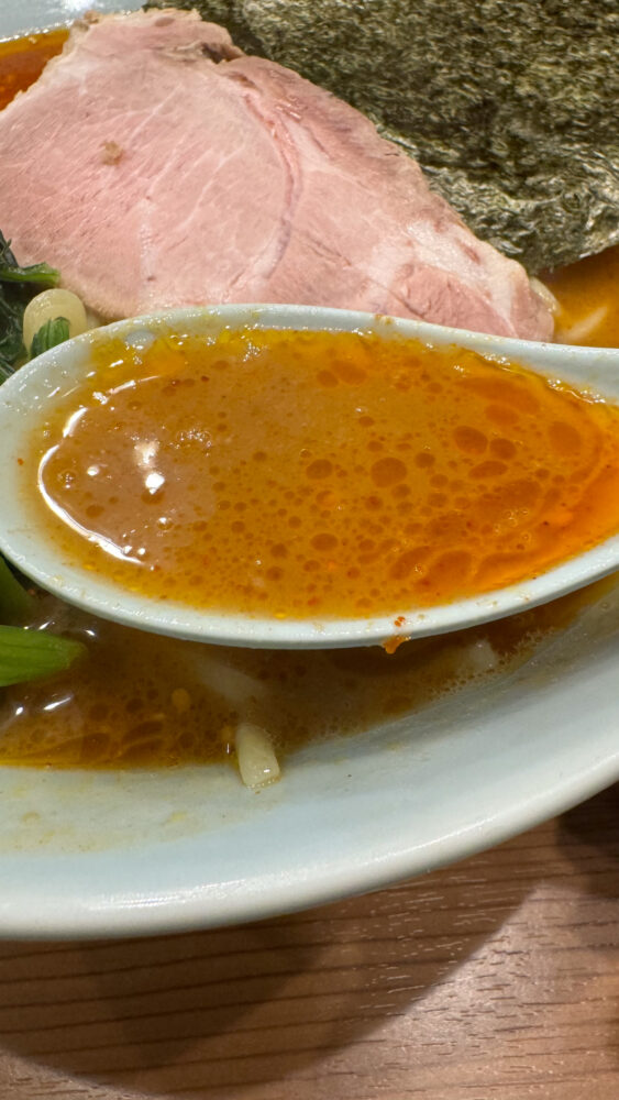 ▲スープはほどよくピリ辛。唐辛子やラー油系の辛さ。