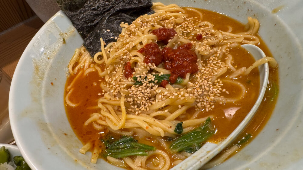 ▲終盤は、卓上のすりごまと豆板醤で更なる旨辛を追求!味も濃くなってラストスパートに最適でした。