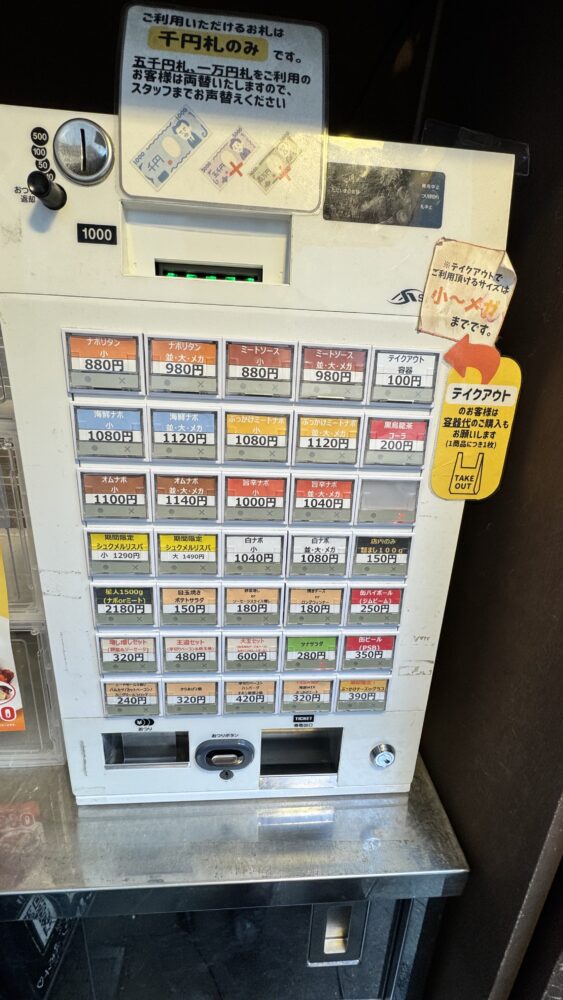 ▲店外の券売機で注文します。電子マネーが使えないタイプ(現金オンリー)で残念。