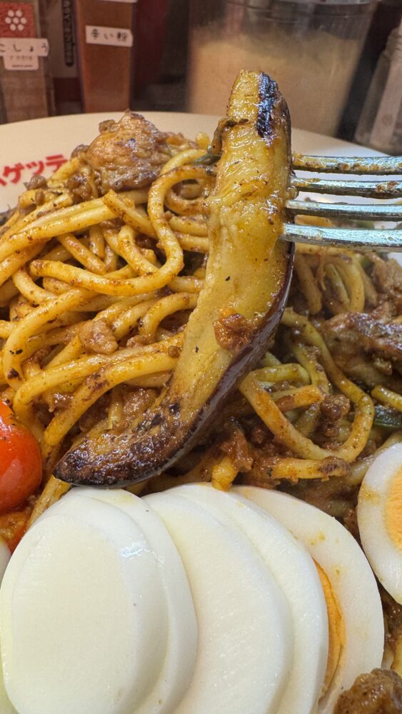 ▲なすはしっかり炒められており、ジューシー。カレーソースもしっかりまとっていて美味しい。