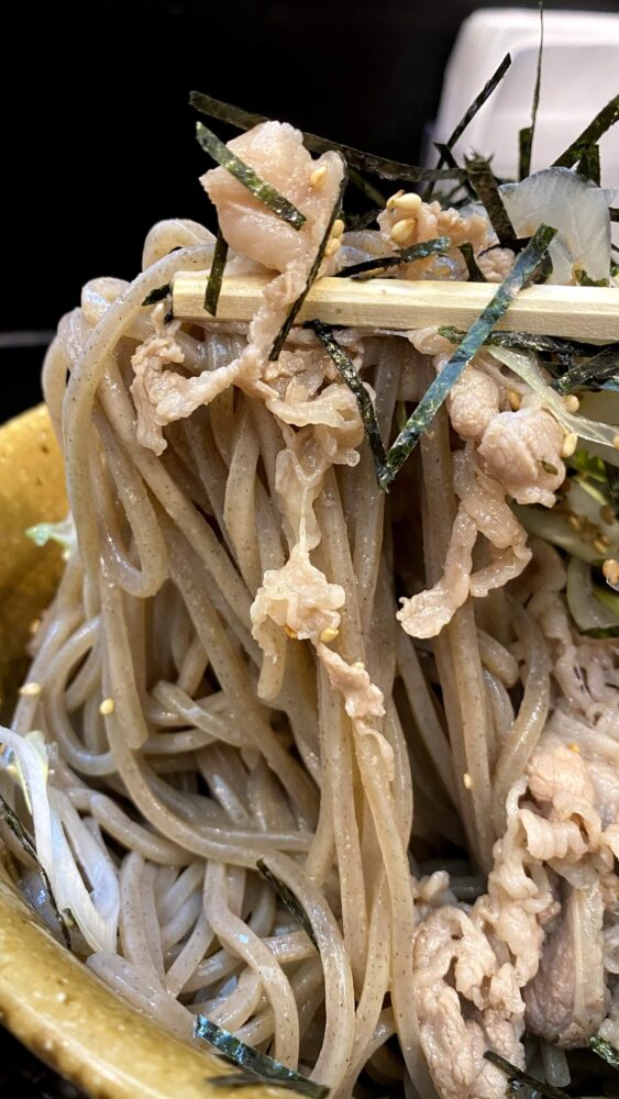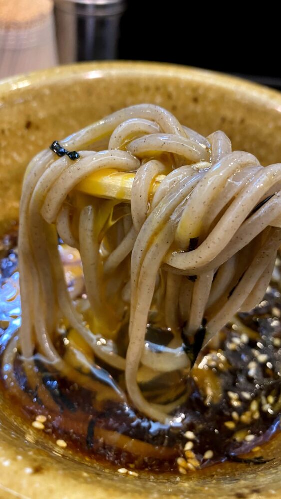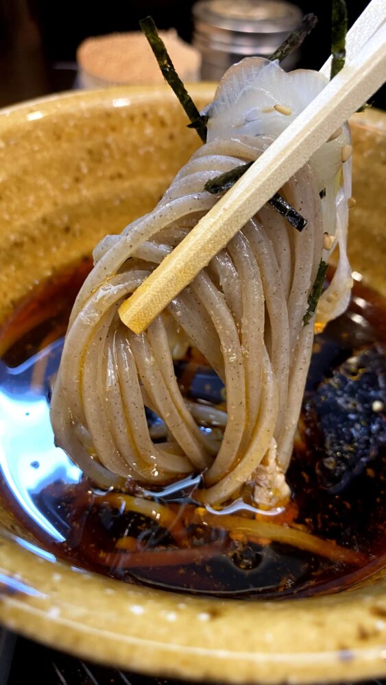 本来、蕎麦はつけ汁にさっとくぐらせるのが乙ですが、このお店ではしっかりめにつけ汁にくぐらせた方が合っているような気がしますね。