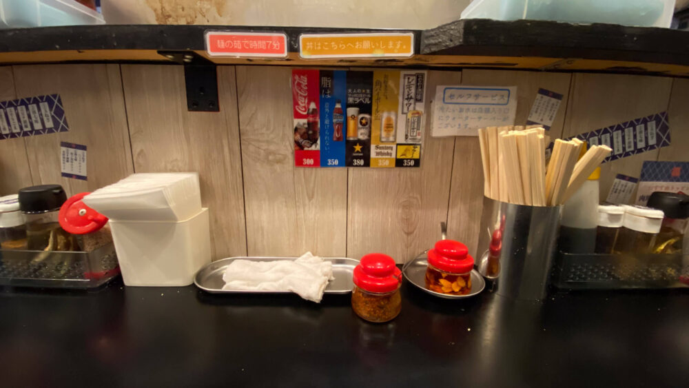 食券を購入したら、店員さんへ渡し、空いているカウンター席へ座ります。