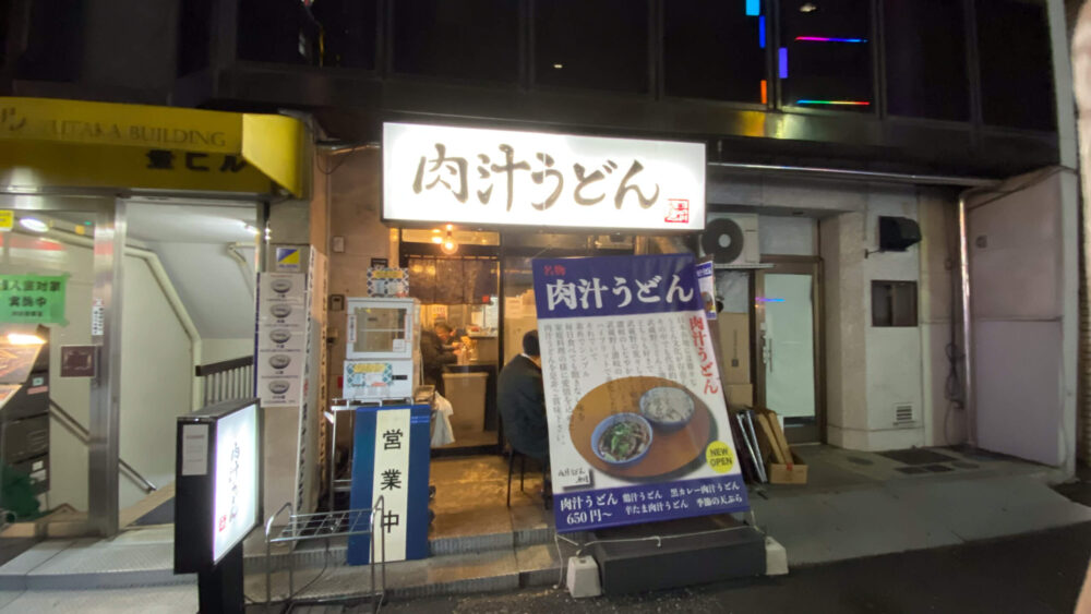 ▲「肉汁うどん」が強調されているので専門店だと一発で分かる外観です。