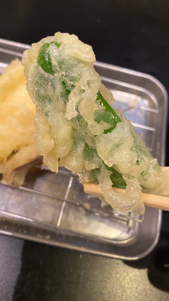 ▲ピーマンの天ぷらはカラッと挙げられていて美味。