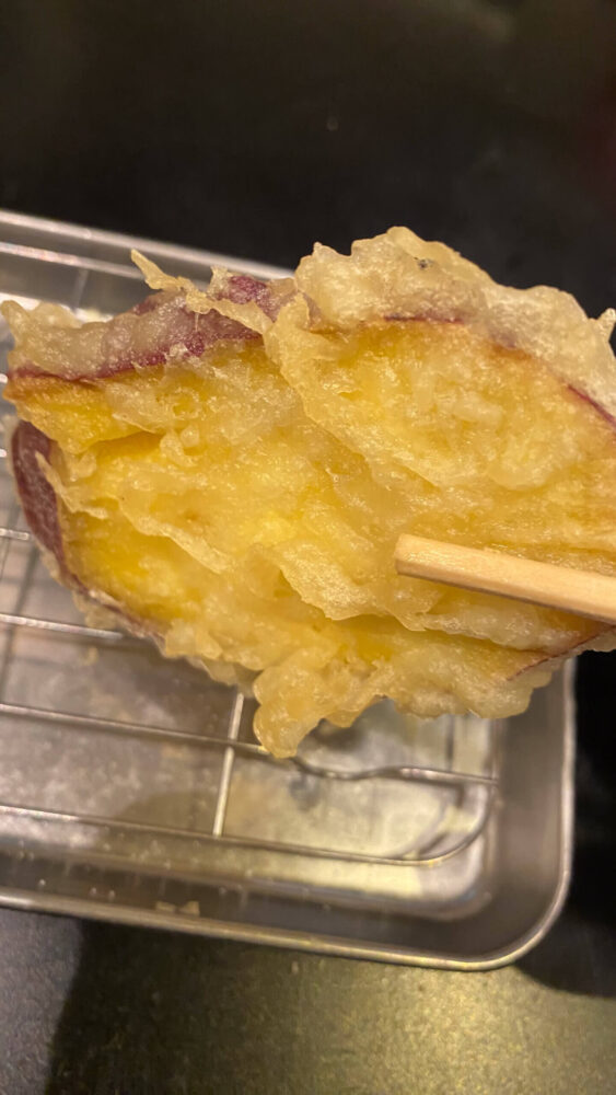 ▲サツマイモの天ぷらは中がほくっとして安心する美味しさ。