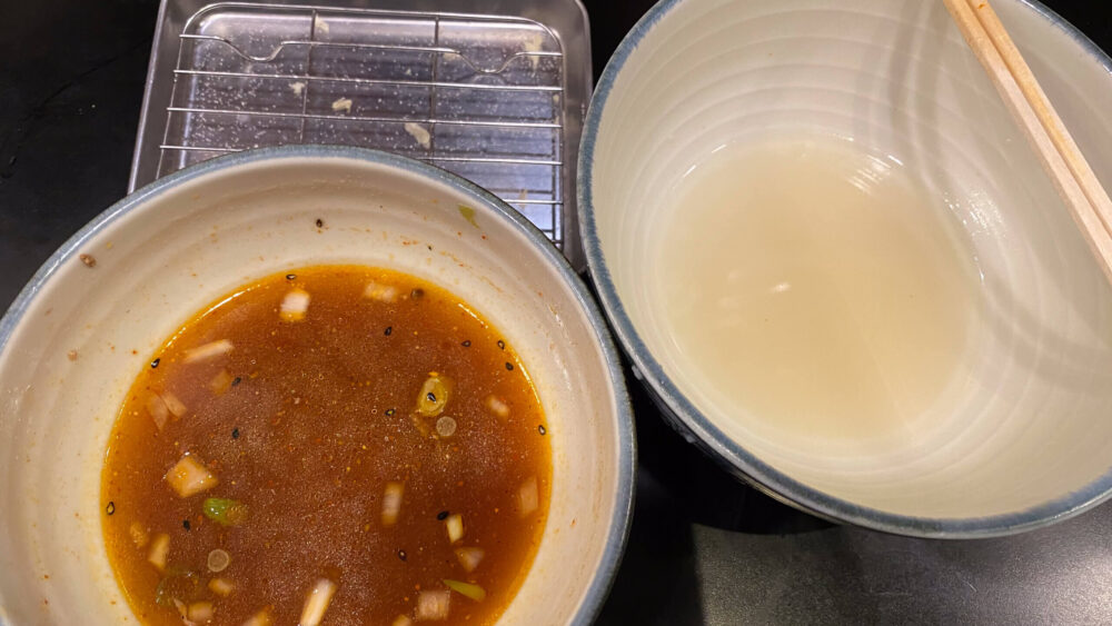 ▲つけ汁のお肉は肉増し増しにしたので、かなりの肉量。なかなか減らないです(笑)