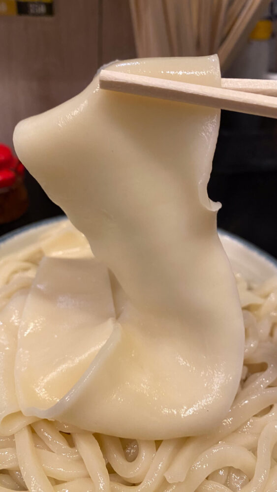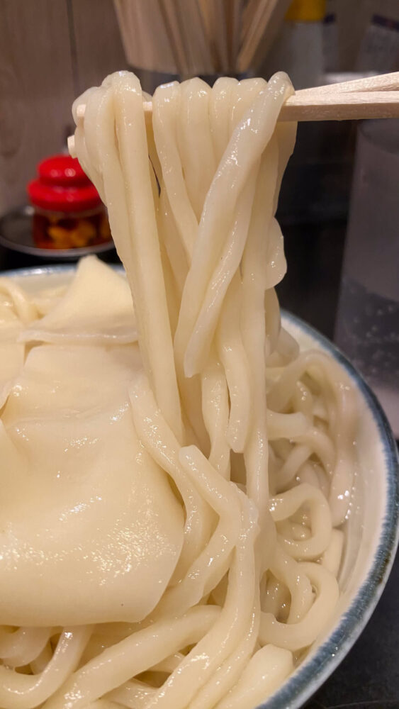 ▲武蔵野うどんの方はより小麦を味わえますね。本数が少ないので大事に食べます。