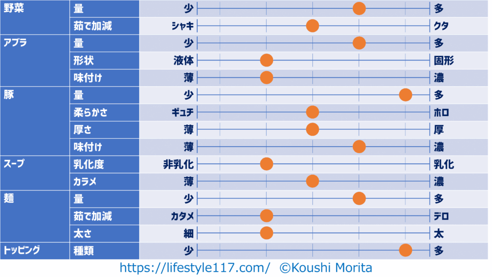 私は原則ニンニクを入れない(妻に怒られるので)ため、項目からニンニクは除外しています。