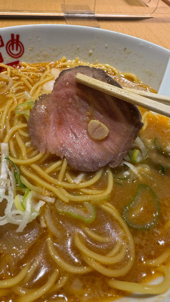 ▲牛のチャーシューはローストビーフみたい。しっとり食感で牛の旨味があって美味。