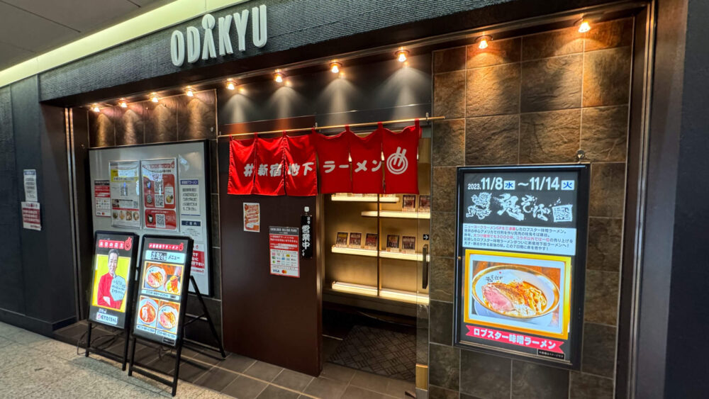 ▲真っ赤な「#新宿地下ラーメン」の暖簾。お店は期間によって変わるシステム。
