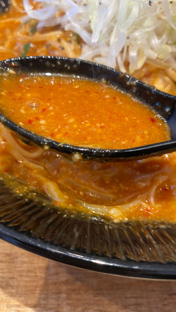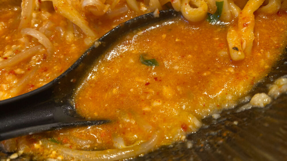 見るからにドロドロな辛味噌スープがエモい!辛味噌の匂いが食欲をそそります!