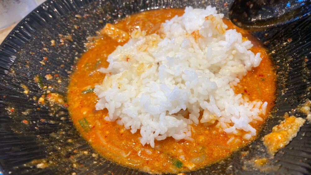 ▲読み通り辛味噌スープは雑炊風にしても最高でした!