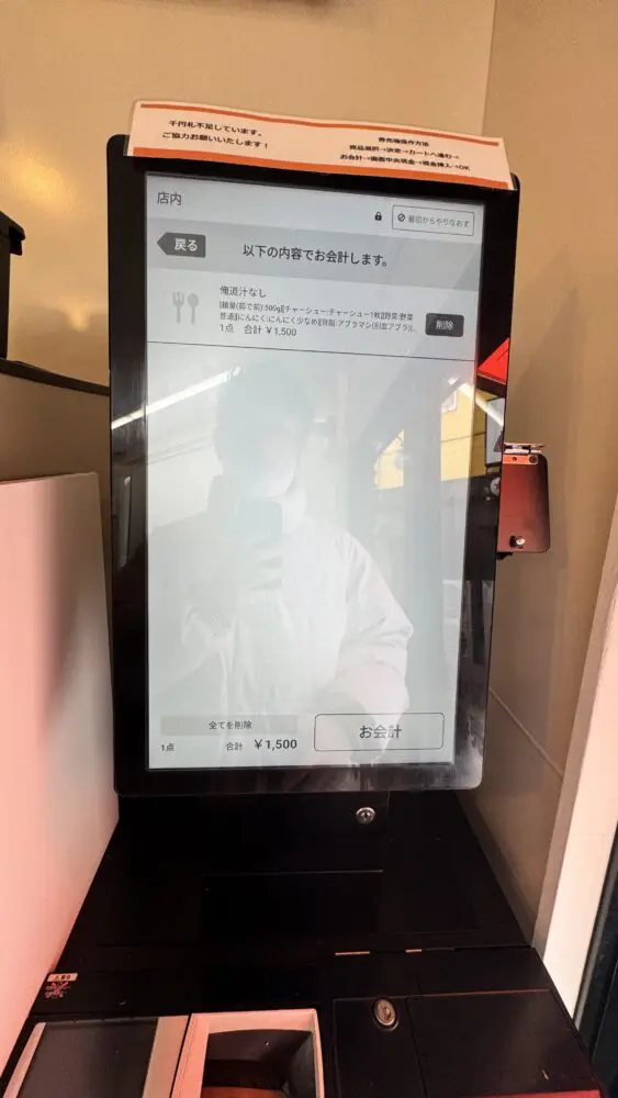 ▲店内のデジタルな券売機で注文します。ただし、現金決済のみ。